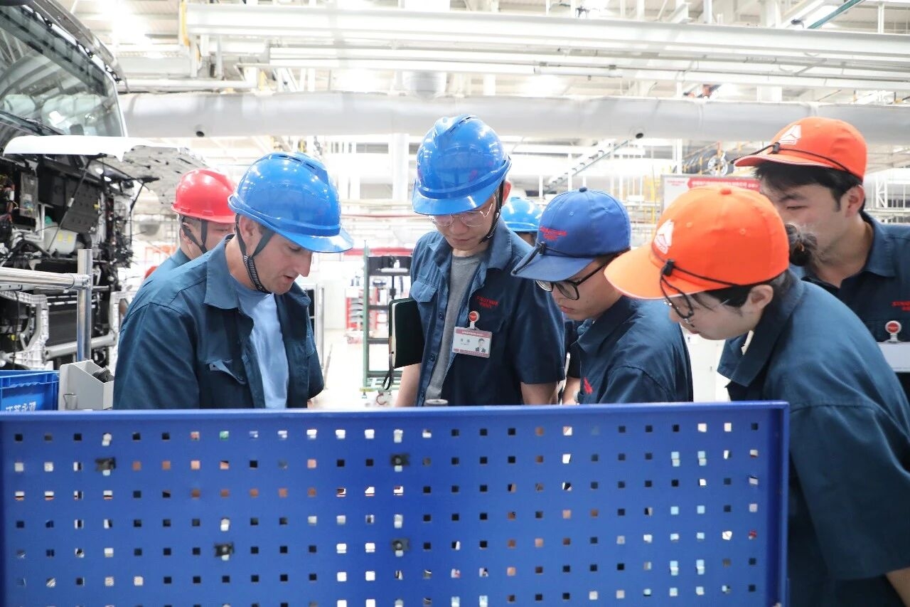 现场支持:每日召开现场调度会,集中处理生产异常问题,实现不同车型订单均衡生产,目前,公司双班产量稳定在250辆份,产能纪录持续刷新。